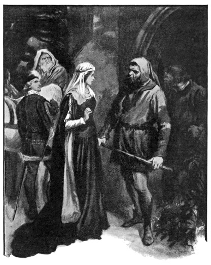 Из мрака дверной арки им навстречу выскочили двое дюжих бородатых слуг с дубинами и злобно спросили, кто они такие и чего им здесь надо. Леди Мэри уже спрыгнула с лошади и пошла к двери, но они грубо преградили ей путь, а один воскликнул, хрипло расхохотавшись:
