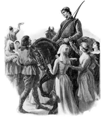 Чандос прислал сказать Найджелу, что будет ждать его в Уинчелси в харчевне «Вересковый цветок». И за трое суток до назначенного дня они с Эйлвардом выехали из Тилфорда со всем своим военным снаряжением. Счастливый Найджел весело отправился в путь в охотничьем костюме, а его бесценные доспехи и очень небольшой багаж были навьючены на запасную лошадь, которую Эйлвард вел на поводу. Сам он ехал на крепкой вороной кобыле, тяжелой и медлительной, но зато хорошо выдерживавшей его немалый вес. В кольчуге и каске, с висящим у пояса прямым мечом, с желтым длинным луком за спиной и колчаном, полным стрел, на алой перевязи, он выглядел так браво, что любой рыцарь с удовольствием взял бы его в свою свиту. Весь Тилфорд провожал их, пока они неторопливо поднимались по длинному вересковому склону холма Круксбери.
