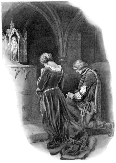 Затем они на мгновение обнялись, и влюбленный юноша и любящая девушка скрепили поцелуем свою помолвку. Однако старый рыцарь нетерпеливо окликал их снизу, и рука об руку они спустились по вьющейся тропе туда, где под песчаным обрывом ждали лошади.