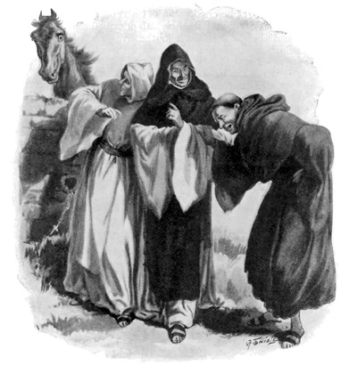 Ключарь повысил голос под смешки монахов, но тот, к кому была обращена эта речь, вряд ли его услышал. При первых тех словах, показавших ему, какой оборот принимает дело, он быстро побежал к своей лошадке, снял с нее крепкую уздечку с мундштуком и, оставив ее мирно щипать траву у дороги, торопливо вернулся.