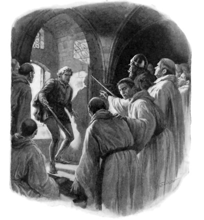– Клянусь святым Павлом! – сказал он. – Не думал я снискать славу в честном бою под кровлей аббатства, но, быть может, мне представится такой случай, прежде чем вы унесете меня в свою темницу!