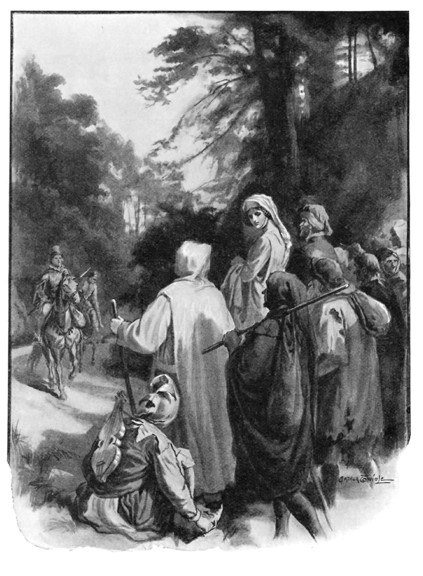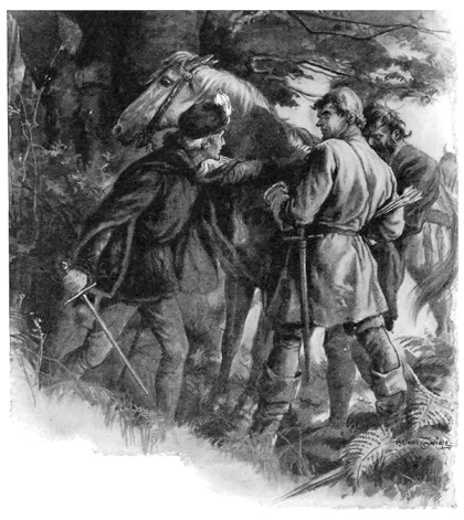 По ту сторону Путтенема дорога вела через густой лес, где под могучими дубами и буками густо разрослись папоротник и ежевика. Там им встретился дозор – крепкие молодцы, одетые в кожаные шапки и панцири, усаженные металлическими бляхами. Вооружены они были мечами и копьями и вели на поводу отличных коней, держась тенистой стороны дороги. При виде двух всадников они остановились и спросили, не нападал ли на них кто-нибудь.