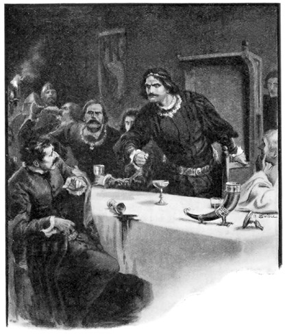 – Лжец и злодей! – загремел король, вскакивая на ноги и ударяя тяжелым кулаком по столу так, что кубки зазвенели. – Взять его, лучники! Взять! Держите его за локти, чтобы он ничего над собой не сотворил. Ты смеешь говорить, глядя мне в лицо, бесчестный Ломбардец, что ничего не знаешь о де Шарньи и его планах?
