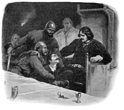 Позади короля, одетый в свой лучший, но такой жалкий среди этого блеска костюм, стоял Найджел и, хотя все тело у него болело, и особенно растянутое колено, сам прислуживал своим августейшим гостям, которые через плечо осыпали его веселыми шутками, все еще посмеиваясь над приключением на мосту.
