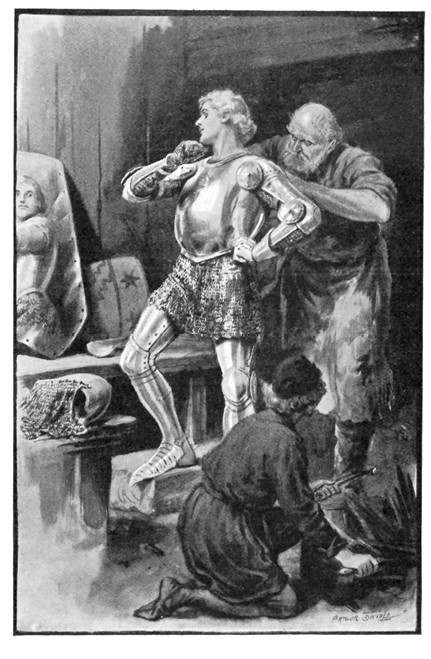 Оттуда Найджел поспешил к Уоту и купил те самые доспехи, на которые с такой тоской смотрел в прошлый раз. Он тут же примерил их. Уот и его подмастерье обходили его со всех сторон, затягивая винты и застегивая застежки.