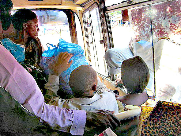 Что тут говорить, если даже шофёр пользовался окном, когда же нас остановила транспортная полиция, платить штраф он снова полез через него. Здесь нельзя возить стоящих пассажиров, а уж лазающих в проёмы без стёкол и подавно, но полицейские отводят взгляд от беспорядков, собирая нещадно подати.