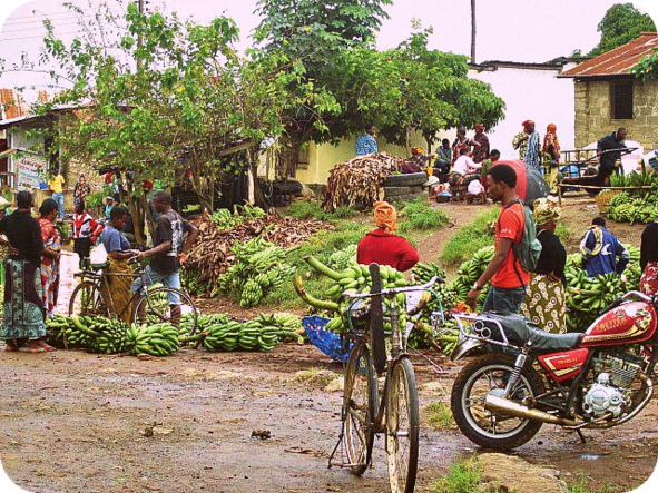 Торговая площадка пока не была интересна. Быстро устроилась в так называемый эколодж за $5! Невероятная стоимость! Но всё там было: и чистая постель, и мебель, стулья принесли, полог над кроватью повесили, москитные сетки в рамах имелись, а ещё для общего пользования предназначался просторный холл с длинным столом посередине. Всё как у людей, только не было света. Дождливая пора, и где-то случилось замыкание. Именно так оправдался работник. Но я-то в курсе, что и без того в глубокой Африке почти всегда нет электричества.