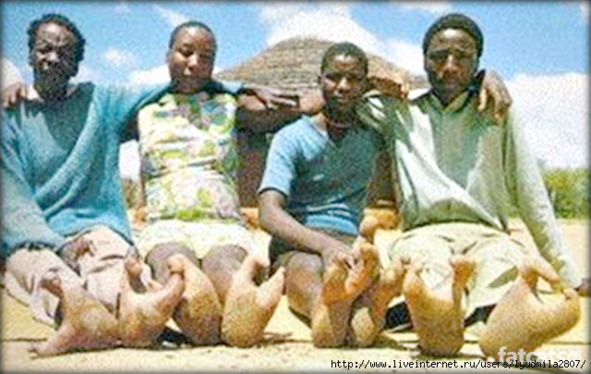 Редкостная особенность племени не что иное как уродство. За сотни лет ген уродливых пальцев охватил всех представителей народности, передаваясь по наследству, формируя новые навыки и привычки. Люди были изолированы от мира, не предполагая о нём, а их взяли и нашли, то есть открыли. Вот и рассасываются они по нему. Благо, туристов к ним пока не возят. Хотя есть ещё народность каланга в точке сближения Замбии с Зимбабве, там подобные физические изъяны у некоторых соплеменников. Туда путешественники просачиваются.