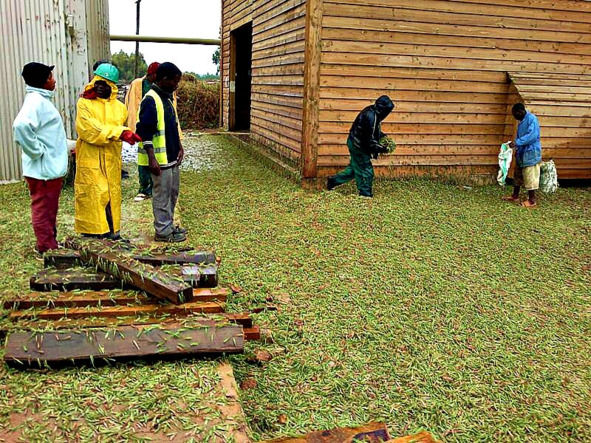 Водитель пострадавшей машины надел шапку Деда Мороза, взял в руки мачете и давай зелёные сучья рубить, разбрасывая их по обе стороны вместо аварийных знаков. Сцена напоминала новогодний спектакль в пелене мороси. Хоть и Африка, а башка в сырости стынет. Что хорошей шапке зря пропадать? Ведь жизнь продолжается.