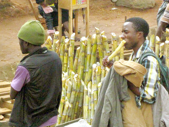Судя по количеству желающих перейти в Танзанию, стало ясно, что подождать здесь придётся. Автобусы выстроились вдоль улиц, терпеливо дожидаясь своих пассажиров. Торговки с подносами разносили относительно съедобные продукты, проталкиваясь среди толчеи, только мне что-то ничего не приглянулось. Варёные бананы и жареная кукуруза была нарасхват, а сахарный тростник грызли почти все вокруг, видимо, вместо утреннего кофе.