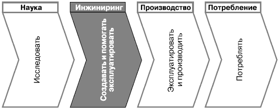 Рис. 1.2.2. Позиционирование инжиниринга между наукой и производством