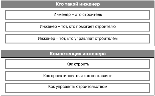Современное понимание термина «инжиниринг» во многом сохранилось. При создании объекта инженер выполняет роль «ученого-строителя», или помогает строителю, или руководит им. Инженер знает, что строить, как строить и как управлять строительством (рис. 2.1.1).
