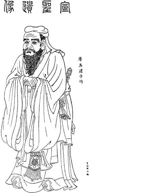 Konfuzius [Kungfutse] Ältestes bekanntes Bild Nach einem Gemälde von Wu Dau Dsï (Wu Tao Tzu) berühmtem Maler der Tang-Dynastie (ca. 900 Jahre n. Chr.)