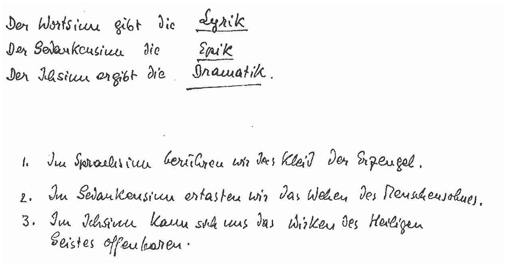 «Wir können darüber hinaus im sinnesphysiologischen Experiment diese Qualitäten in reiner Form zum Erlebnis bringen. Hier zeigt sich eine spezifisch menschliche Fähigkeit des Wahrnehmens, die über die naturgegebenen Lebenszusammenhänge hinausreicht. Auf diesem Wege gelangen wir schließlich zu elementaren, nicht weiter analysierbaren Erlebnissen. Es sind dies die sogenannten einstelligen Elemente der Sinnesmannigfaltigkeit, z. B. das Erlebnis der Farbe Rot. Was Rot ist, kann man nicht definieren und deshalb auch nicht mit Worten sagen; man kann es nur erleben, und wer diese Erlebnisfähigkeit nicht besitzt, etwa weil er farbenblind ist, dem ist auch mit Definitionen nicht zu helfen.»8