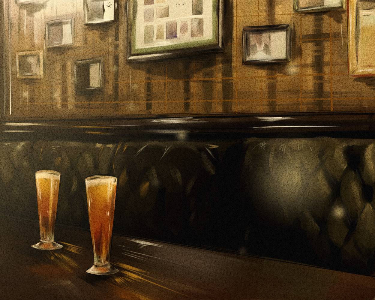 Я задумался, присел на корточки и едва не макнул палец в кровь. По всей видимости, было произнесено что-то не очень лестное. Началась потасовка, а результаты развезли по полу в панике разбежавшиеся посетители бара. Я встал, упёршись руками в колени.