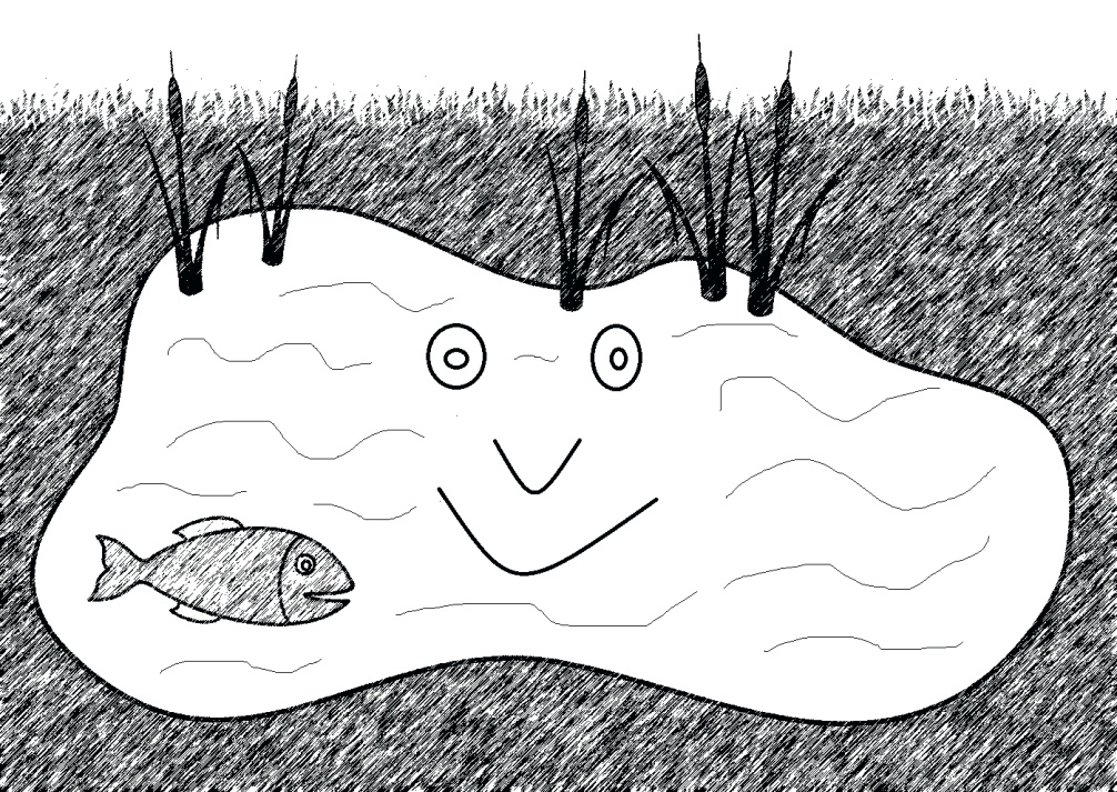 – Да-да, вы не ослышались, это я, озерцо с рыбкой, которое у вас под ногами. Мы увидели, что звуки возникали из этой мутной лужи прямо перед нами, вместе с тем как пузырьки воздуха с клокочущим звуком поднимались с самого его дна.