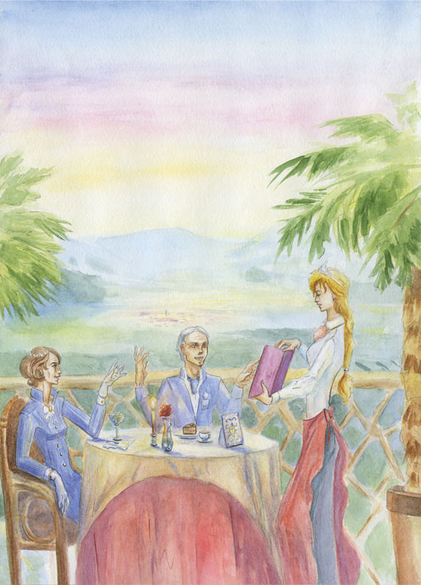 Заходит группа людей: все веселые, счастливые, по их эмоциональному настрою видно, что это гости, приехавшие на свадьбу. Имми их встречает и провожает к столу. А вот и сама сладкая парочка. Да, они действительно красивы и очень подходят друг другу. Фройляйн Линден – высокая брюнетка с мягкими чертами лица и точеной фигуркой, а господин Лоренс – высокий блондин, у него короткая стрижка и широкая открытая улыбка. Гости со свадьбы сделали заказ и пока наслаждались отличным вином, громко разговаривали и смеялись, обсуждая предстоящую свадьбу. Только сам Лоренс пил латте маккиато, а Линден отчего-то очень грустила, потягивая свой любимый лаграйн.