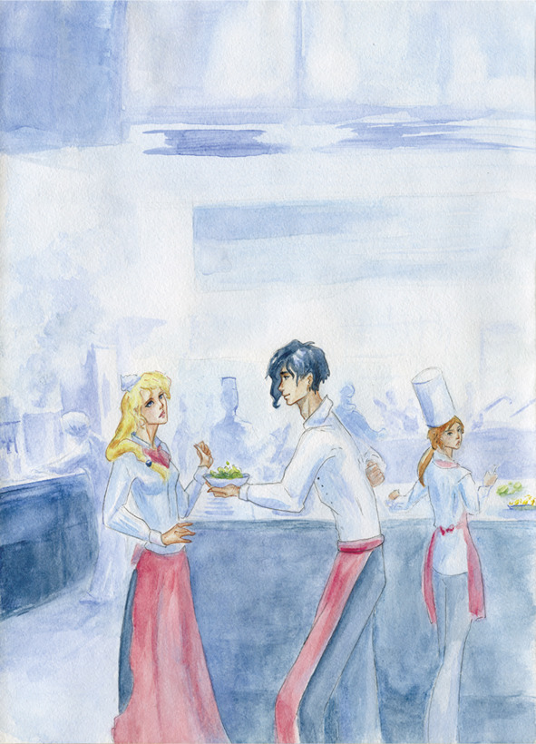 Выхожу в ресторан, Петер дает мне понять, чтобы мы с Джакомо помогли им вынести холодные закуски для гостей. Мы заходим на кухню: