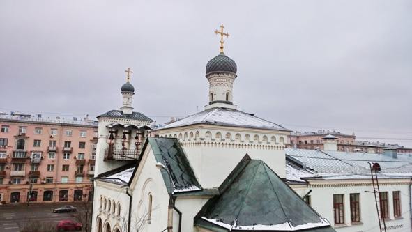 При больнице – два храма, построенные в стиле псковской церковной архитектуры (архитектор С. Соловьев). Было удивительно наблюдать из окон больничного корпуса, на одной высоте со звонницей, за работой звонарей. Мне выпала редкая возможность!