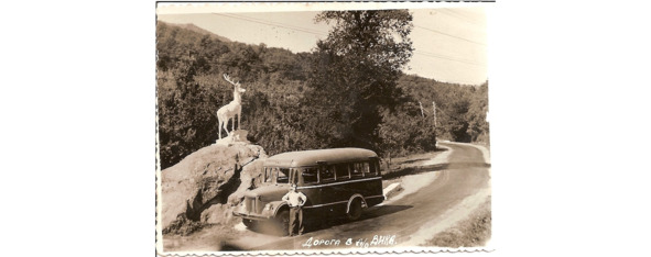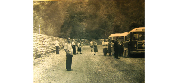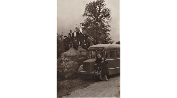 Фото №34. Автобус у скалы «Сердце – камень». 1954 год. (Фото из архива семьи Дорониных – Недошкуло)