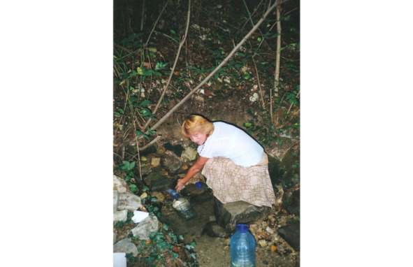 Но туристы помнят эту дорогу и по-прежнему идут по некогда оживлённой трассе. Не один раз и я прошла здесь со своим сыном. Однажды мои экскурсанты, которые шли этой дорогой в далёком 1957 году, показали мне ещё один родник. Чуть ниже скалы в овраге бежит ручей, а под скалой из-под земли сбоку бьёт небольшой родник, его вода чуть солоновата на вкус, и этот родничок называют «Слёзы Бога». Но специалисты, вот ведь вредные, считают, что это очередной источник с минеральной водой. Правда, ручей Цуцуюк, который журчит рядом, не всегда даёт возможность попробовать эту воду, но очень жарким летом нам удалось попробовать воду из родничка. Действительно, легенды не врут, маленькими струйками вода сочилась из-под камня, словно слёзы. Немного набрали в ладонь и попробовали, вода была чуть солоновата.