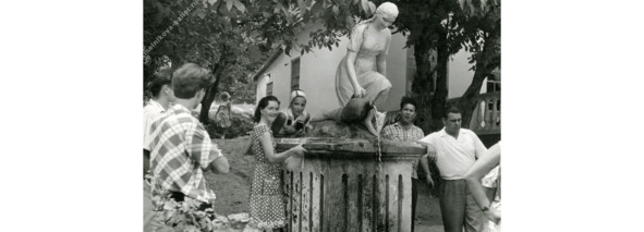 В 1950 году, из Новороссийска пришла машина и привезла скульптурные композиции: медведицу с медвежатами и девушку с кувшином.