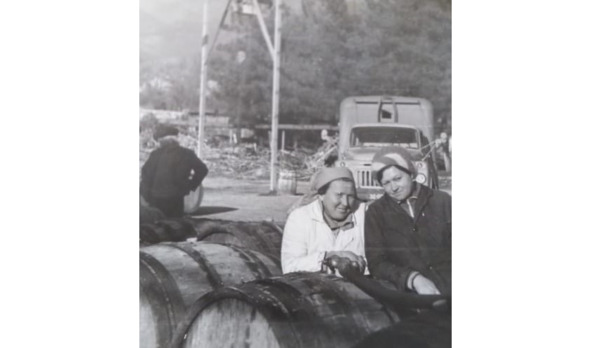 Фото №57. На заводе в селе Михайловский перевал. (Фото из семейного архива Чернеги Оксаны. На фото в белом халате Гладнева Галина, рядом стоит Чернега Зинаида)