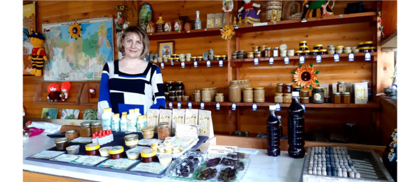 Фото №65. Оля Басюк за прилавком с медовой продукцией