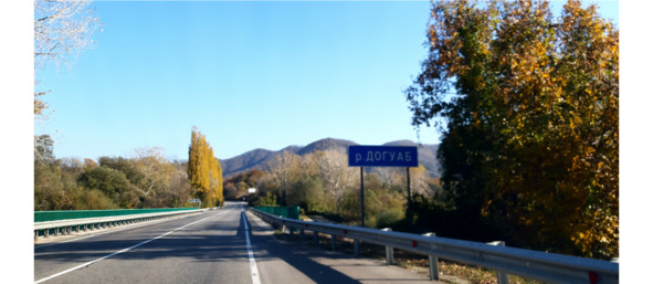 А мы с Вами выезжаем на главную дорогу и едем дальше. Впереди у нас мост через реку Догуаб.