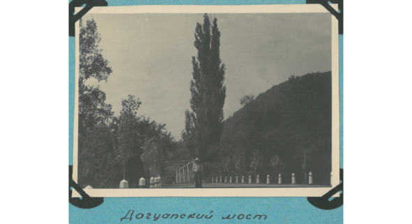 Это фото моста через Догуаб, только если бы вы ехали в Геленджик в 1960—1961гг. Всё-таки в старой дороге было своё очарование. Вдоль неё высаживались тополя, ставились беседки, ротонды, скульптуры зверей, облагораживались родники. Где теперь всё это? Уже не найдёшь. Лишь старые фото с надписью: «На добрую память дорогому другу…».
