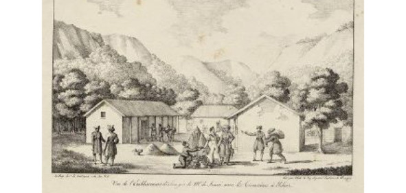 На этом рисунке 1818 года английского разведчика Джеймса Станислава Белла можно увидеть склады с солью в центре Пшады. Черкесских аулов в долине располагалось множество. Возможно поэтому, здесь на совет племён часто приходили агенты иностранных разведок и русские дипломаты. А чтобы попасть на такой совет, нужно было просто прийти в священную черкесскую дубовую рощу без оружия и переночевать. А если ты еще пожилой и убелённый сединами, то ты не только гость, а ещё и посланник небес. К твоим речам будут прислушиваться.