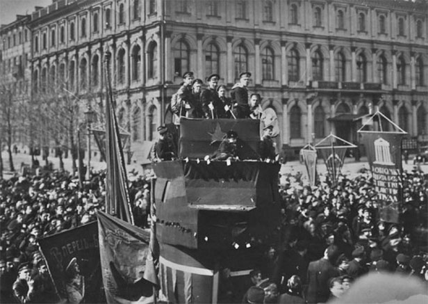 Отец неожиданно приехал с фронта в субботу, и я с ним вечером был в Александринском театре. После спектакля мы с трудом вышли из театра, так как около него собралась огромная толпа и затрудняла выход. Слышны были отрывки произносимых речей и гул одобрения. Полиция была уже бессильна.