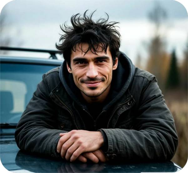 В четверг Андрей рано утром, обдумывая план поездки и встречи с администрацией села “Полдарса”, был отвлечен гудком автомобиля под окном. Он выглянул и увидел темную “Ниву Шевроле”, которая издавала этот звук. Машина, хоть и не новая, была в хорошем состоянии, выдавая бережное отношение хозяина. Выйдя на крыльцо, Андрей остановил свой взгляд на мужчине лет тридцати с небольшим. Тот стоял, облокотившись на капот, и смотрел на него с живой улыбкой, в его светло-серых глазах вспыхивали задорные янтарные огоньки, отражая его неподдельный интерес и веселье. Тёмные, слегка растрёпанные волосы, которые казались непокорными, придавали ему вид человека, излучающего живость, заразительную энергию, спонтанность и непредсказуемость.