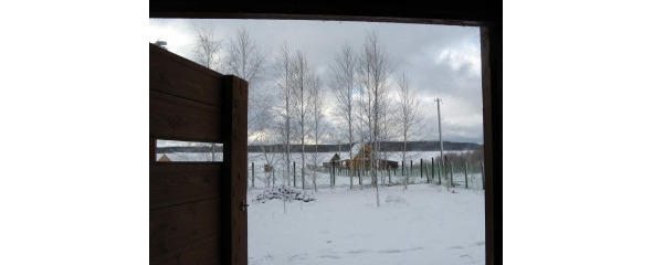 За два дня до возвращения в Москву резко похолодало, нас опять завалило снегом, что и видно на фотографии, сделанной через полуприкрытую дверь туалета, спасающего от ледяного ветра.