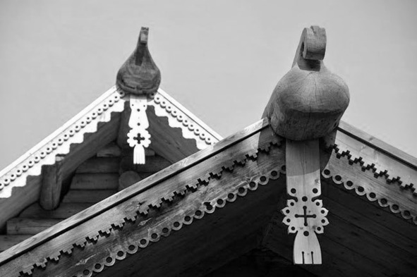 Настоящие деревянные крепости, про которые Белов писал, что крестьянский дом на Севере это подводная лодка в автономном плавании. Но деревня была к тому времени истощена.