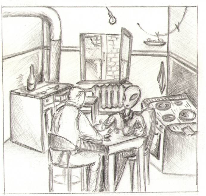 Конец вечера прошел в дружелюбной компании за игрой в карты и чаем. Ваня то и дело переглядывался с Олей, та наблюдала за партией со стороны. Одета была во все домашнее, пучок волос на голове, просторная Ванина кофта, короткие домашние шорты и полосатые носки. Июль, уже давно забывший о важной миссии, в простой тельняшке спокойно перекидывался в карты, не вспоминая про свою планету, как про страшный сон. И только медальон на груди напоминал о том, кто он есть. Ваню тоже ничто не беспокоило. Он, как и пару дней назад, наслаждался простой жизнью. Только сейчас ушло чувство одиночества, и его состояние было все больше похоже на счастье. Через пару часов Июль заснул в кресле, Оля спала на раскладушке, Ирландец с Ваней курили на балконе.