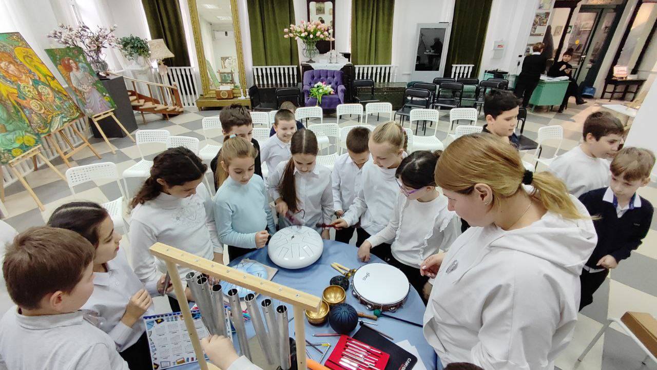 На фото: мастер перкуссии Калдузова Анастасия проводит культурно-оздоровительное мероприятие по музыкальной перкуссии для детей.