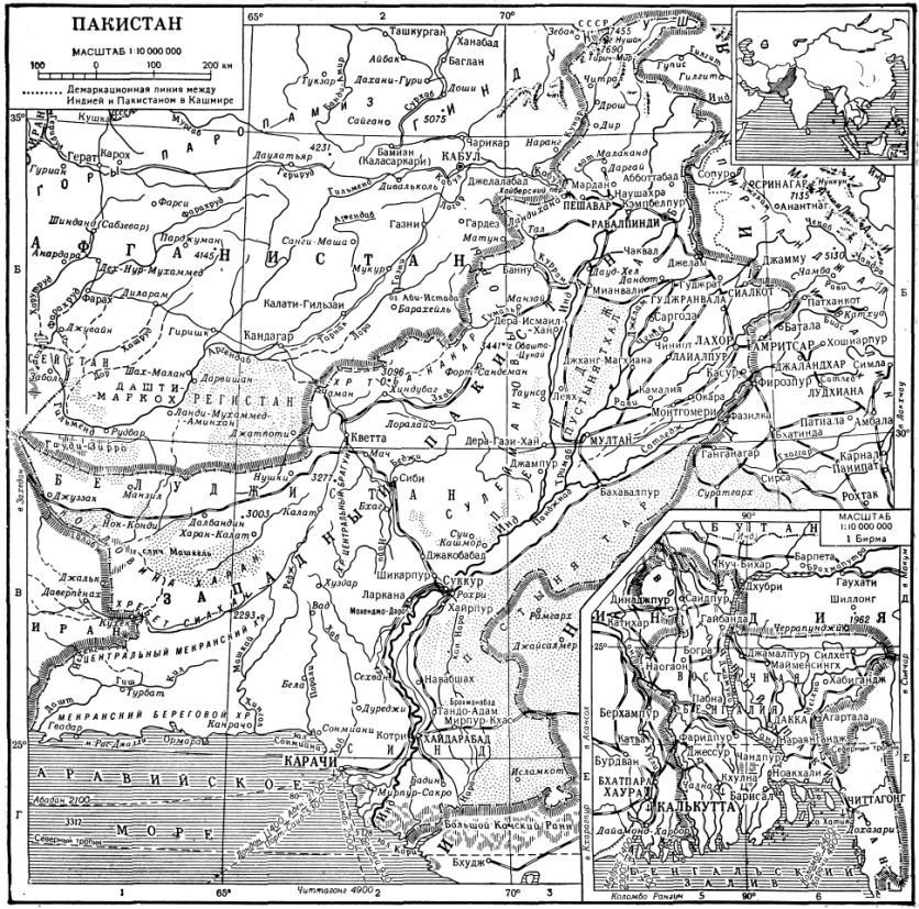 На этой карте Пакистана присутствуют пустыни Тар, Тхал, котловина Харан и Регистан (в Афганистане).