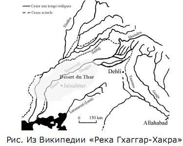«Исследователи полагают, что им также удалось разрешить многолетний спор о судьбе мифической реки Сарасвати. В древних индийских писаниях есть указание на то, что эта река превосходила все прочие в данном регионе по своим размерам. Однако её русло не было найдено. Сегодня в сезон дождей из Гималаев в долину Хакра спускается стремительная река Гхаггар, которая теряется в пустыне. Археологические данные свидетельствуют о том, что эта местность была густонаселённой в период расцвета хараппской культуры. В итоге с изменением климата дожди приносили меньше влаги, и когда-то полноводная река Сарасвати превратилась в сезонный горный поток. В ходе нынешнего геологического исследования учёные также собрали информацию о местоположении городов и небольших поселений, о трансформации сельского хозяйства и миграции людей на поздних этапах увядания цивилизации. Около 3900 лет назад реки хараппов пересохли, и они были вынуждены покинуть свои города и переместиться на восток, обосновавшись в бассейне Ганга, где муссоны позволяли процветать сельскому хозяйству. Здесь преобладали разрозненные аграрные общины, и некогда могучая цивилизация утратила своё былое величие, а вместе с ним и большую часть культурного наследия", – заключает Джиосан в пресс-релизе института». (vesti.ru/doc.html?id=808413@cid).