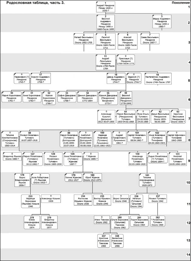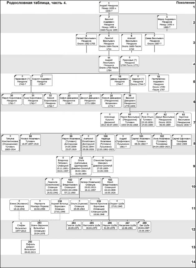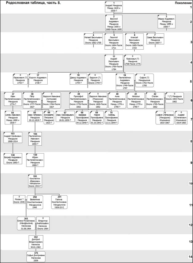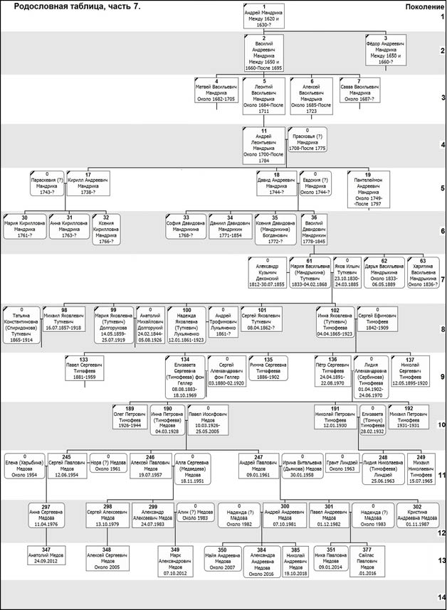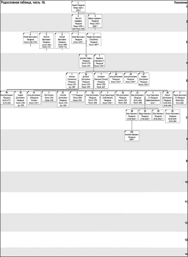 • Родился Семён: около 1702. Родился: Семён Матвеевич Мандрика (8-4).