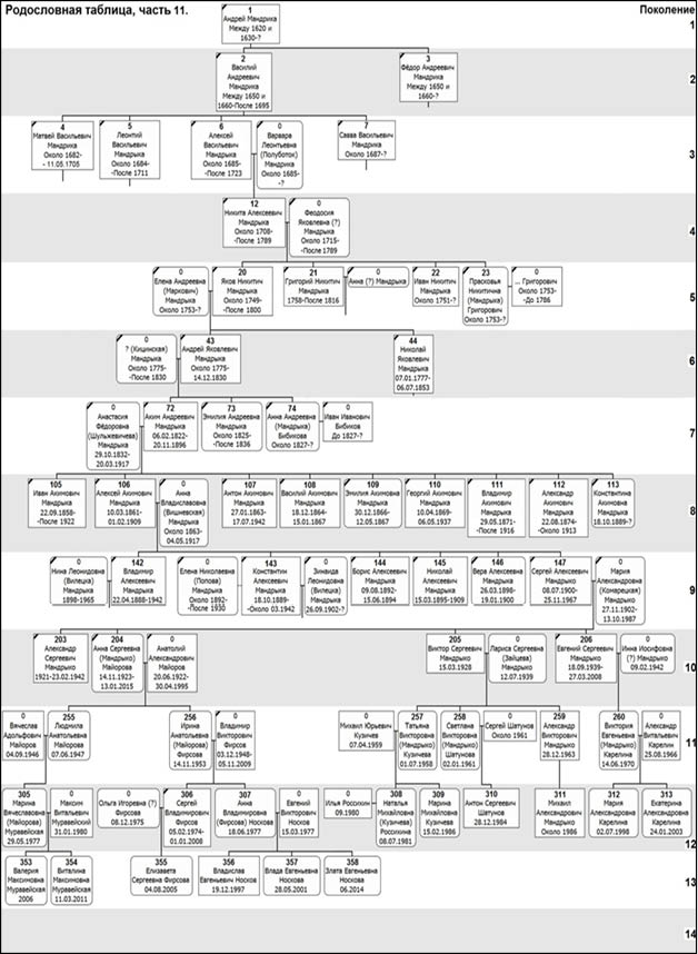 • Родился: около 1685, Кобыжча. Отец: Василий Андреевич Мандрика (2-1).