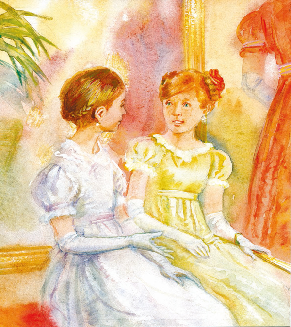 Дожидаясь окончания танца, я села подле маленькой барышни, которая сидела в уголку, была одета очень просто, в белом кисейном платьице; на ней были поношенные перчатки. Она обошлась со мною очень ласково…