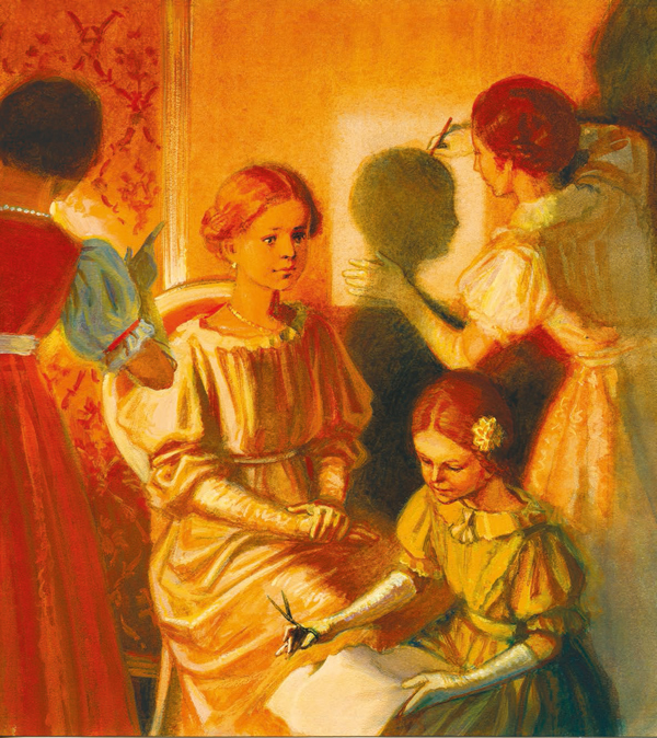 При этом предложении все призадумались, принялись было за карандаши, за бумагу, но, к несчастию, у всех выходили какие-то каракульки, и все с досадою бросили и карандаши и бумагу. Одна Таня тотчас обвела по тени силуэт графини Мими, взяла ножницы, обрезала его кругом по карандашу, потом ещё раз – и силуэт сделался гораздо меньше, потом ещё – и силуэт Мими сделался такой маленький, какой носится в медальонах, и так похож, что все вскрикнули от удивления. Очень мне хотелось, чтобы Таня сделала и мой силуэт, но после моего холодного с нею обращения я не смела и подумать просить её о том; каково же было моё удивление, когда Таня сама вызвалась сделать мой силуэт. Я согласилась; она сделала его чрезвычайно похоже и отдала графине.