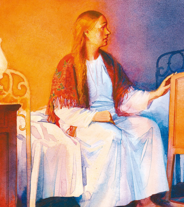 Неясный полусвет ночника слабо освещает четыре детские кроватки и пятую большую, на которой сидит теперь няня в одной рубахе, с выпущенной косой, сидит и сонно качает маленькую Аню.