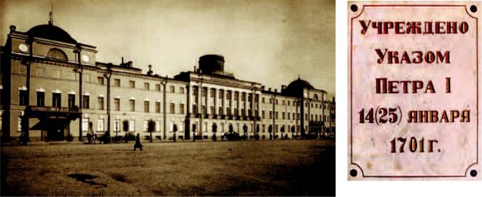 Здание ВВМУ им. Фрунзе. Фото 1930-х годов(слева)