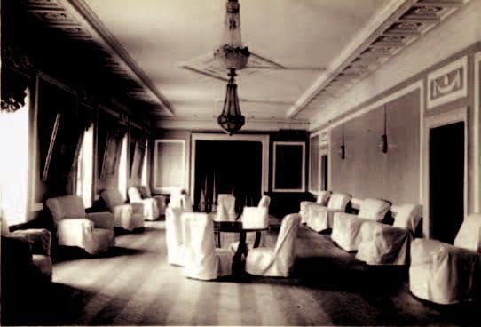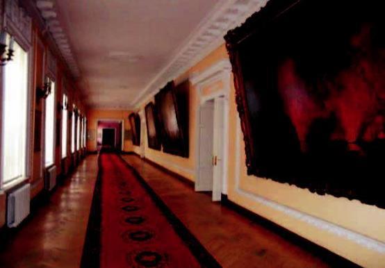 В стеклянных футлярах в галерее стояли черно-желтые модели русских броненосцев, участвовавших в войне 1905 года. В кабинетах, прилегавших к Картинной галерее, размещалась фундаментальная библиотека. Далее находилась Голубая гостиная.