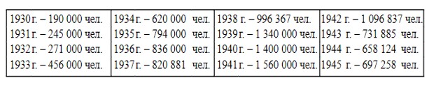середине 1937 года в газете «Правда» был опубликован ответ Сталина «товарищу Иванову», смысл которого сводился к тому, что «сын за отца не отвечает». Сколько миллионов человеческих жизней было загублено в эти годы, никто не знает. В журнале «Аргументы и факты» № 45 за 1989 год были опубликованы данные о количестве арестованных и заключенных в лагеря НКВД по годам этого периода.