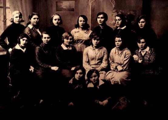 Студентки-выпускницы Ленинградского фармацевтического техникума. Слева вторая сидит Мария Антоновна Иванова. Ленинград. 1935 г.
