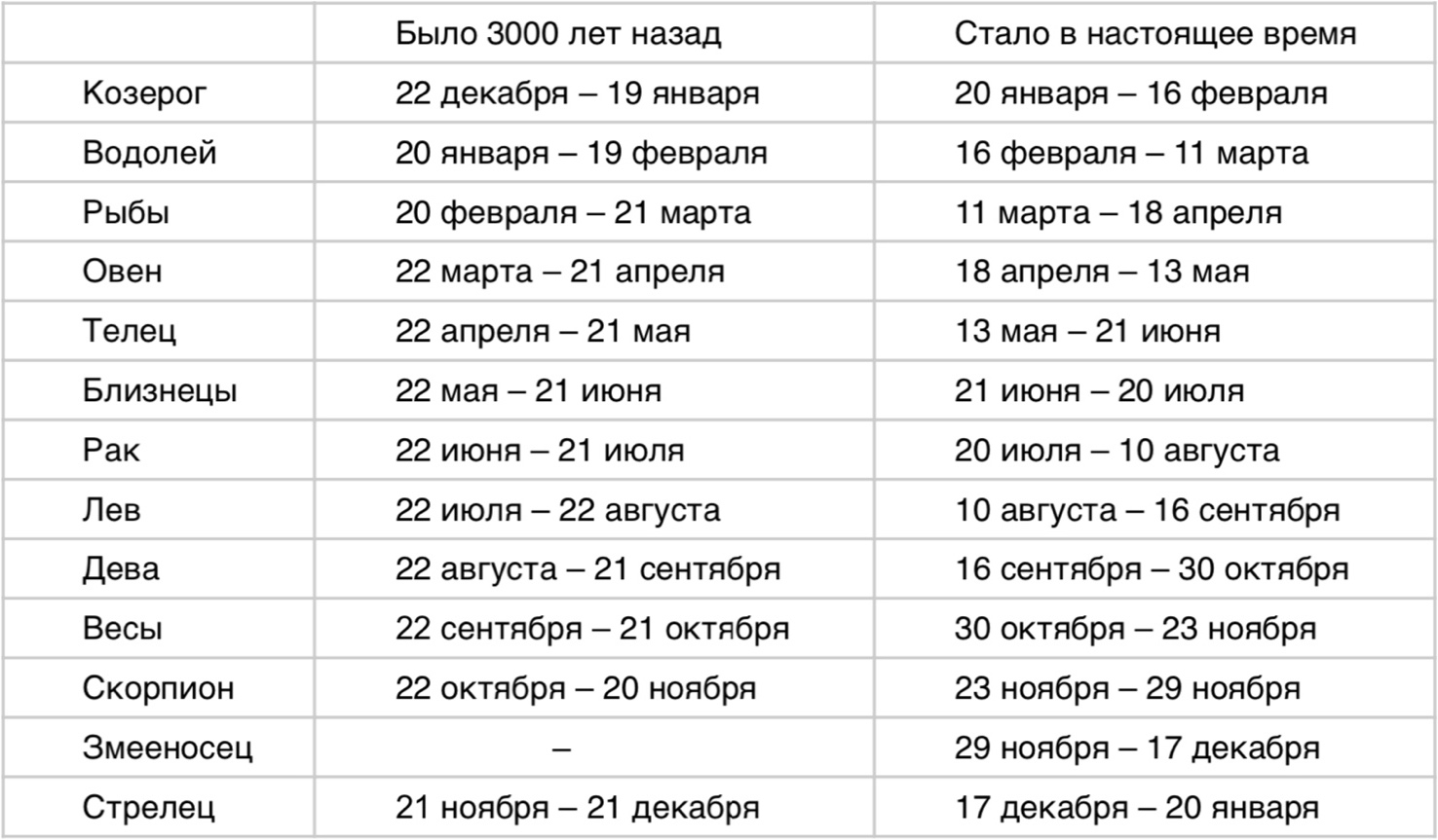 И вот сейчас знаки Зодиака относительно календарных дат выглядят следующим образом.