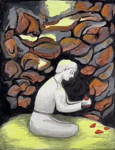 Подземные сокровища. 11.08.1998. Опять я летал во сне над лесами, полями в голубом небе и это было прекрасно; я радовался полётам, людям, небу, всему. Однажды я решился и полетел всё выше в гору, очень высоко. Был небольшой страх и одновременно восторг. Пролетая над самой высокой горой вдруг неожиданно упал в её отверстие на самой вершине. Я не ушибся и не испугался, хотя упал глубоко внутрь горы, но приземлился мягко. Огляделся. Это была штольня. Я вспомнил, что дальше в штольне я находил и закопал драгоценные камни. Штольня была очень светлой, свет жёлто-золотистый, мягкий. Я разгреб руками желтый песок, нашел камни и любовался ими.